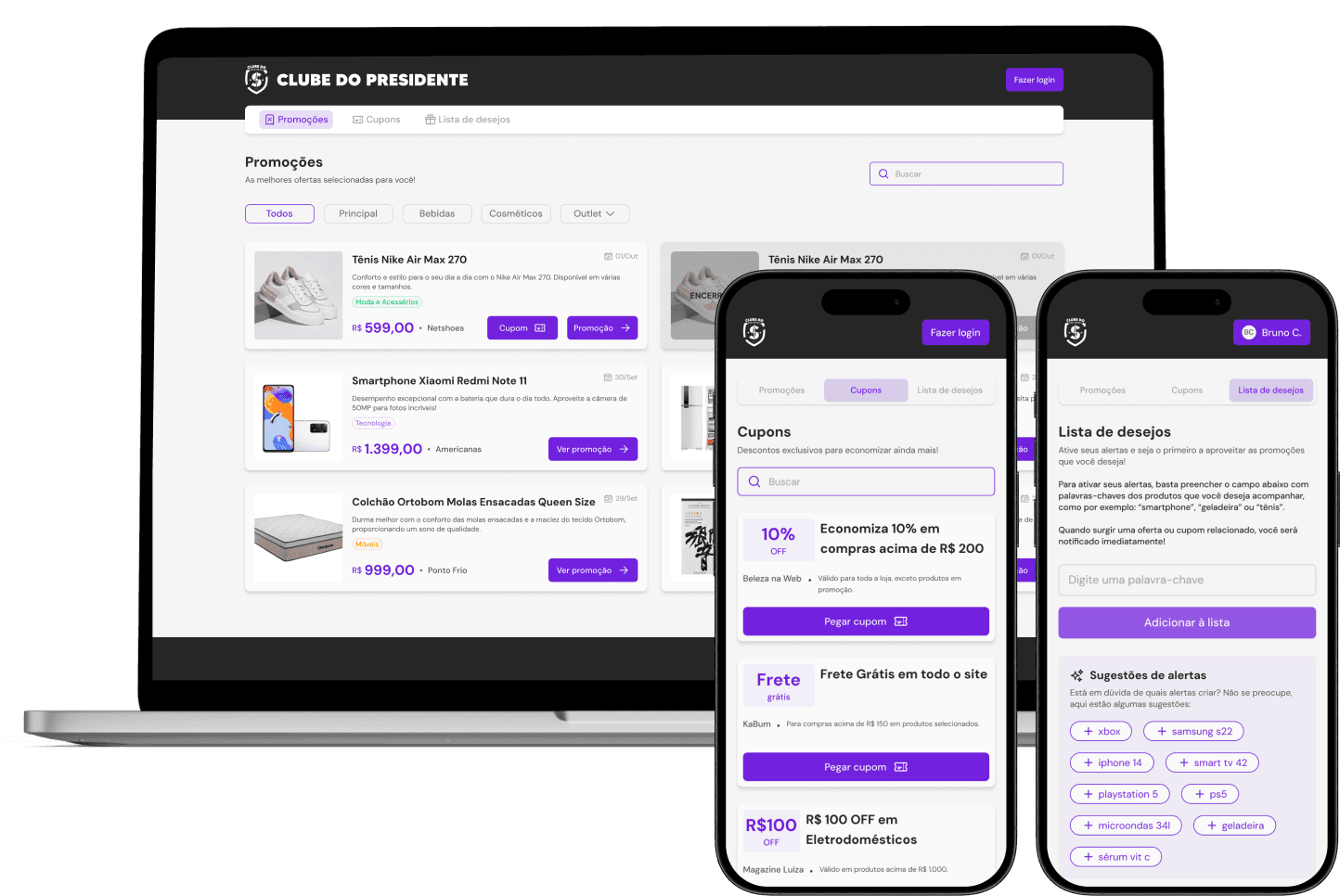 O Clube do Presidente encontra e compartilha as melhores ofertas de lojas confiáveis, garantindo descontos seguros e variados todos os dias.